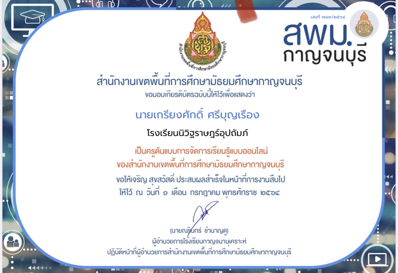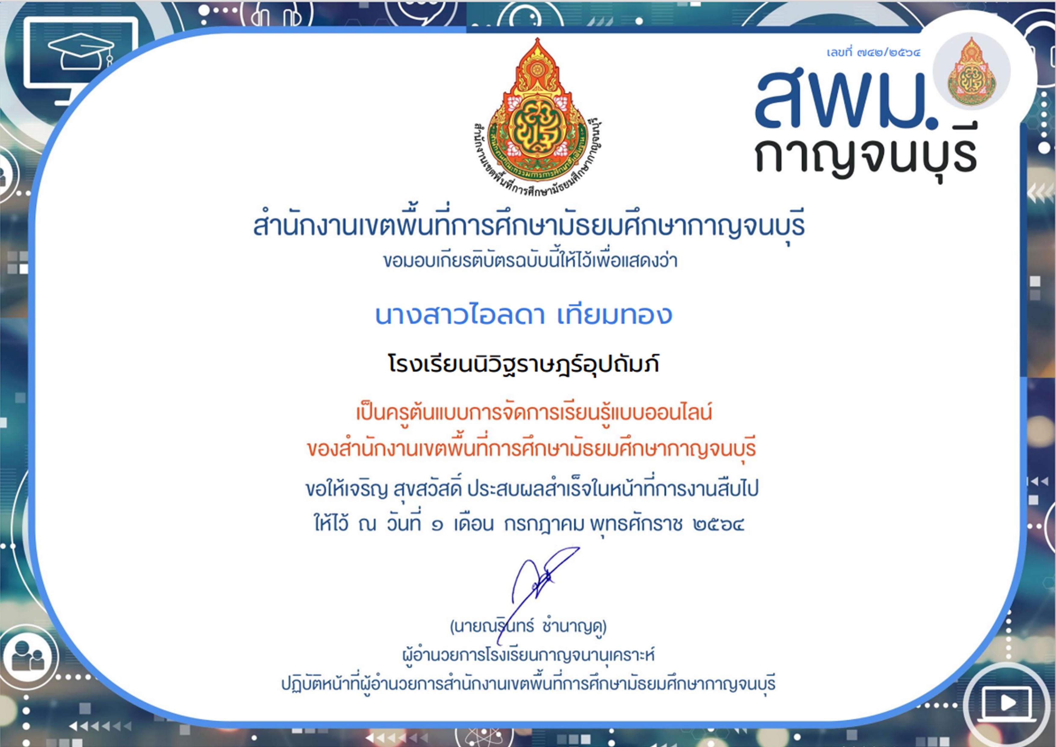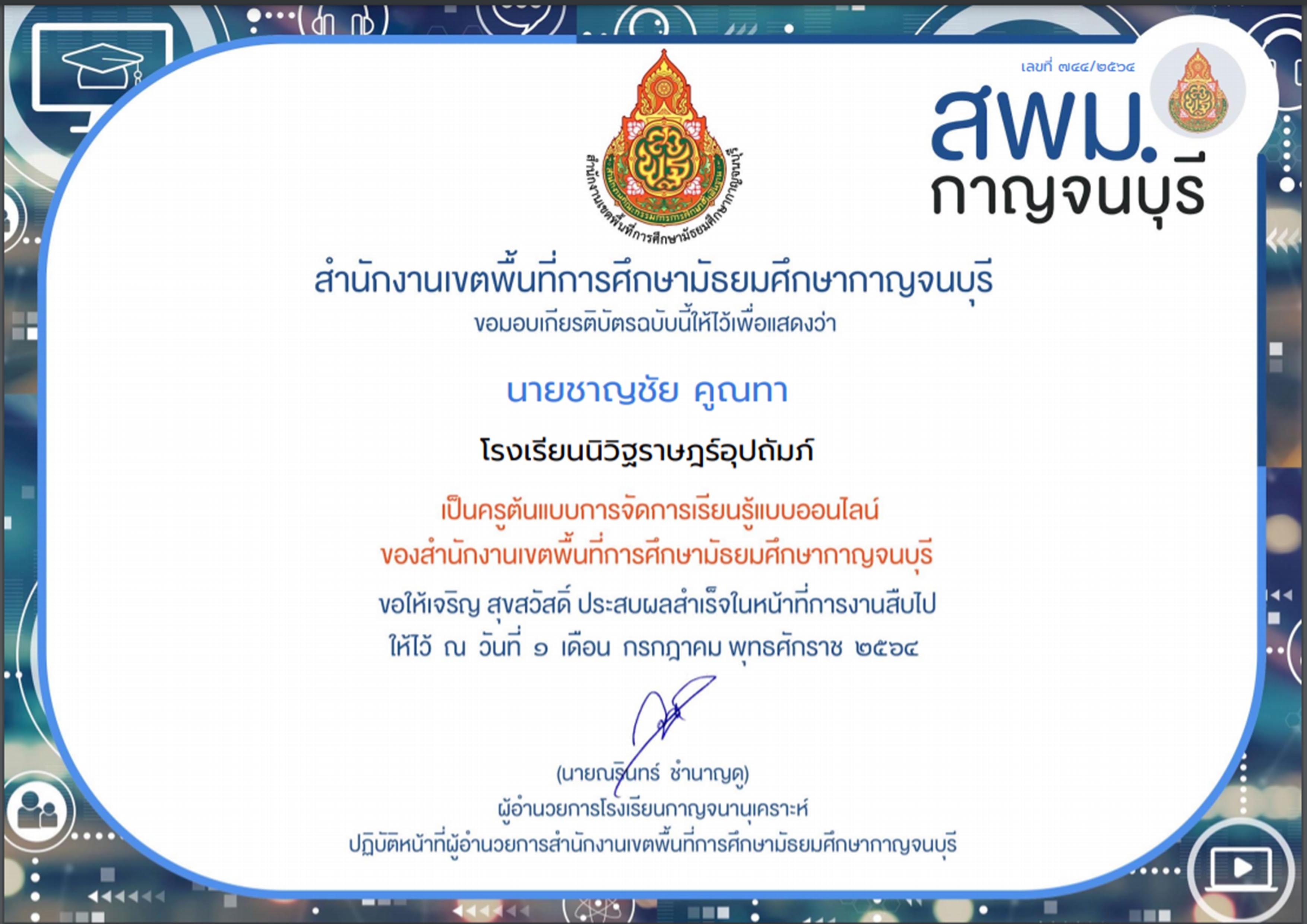 ครูต้นแบบการจัดการเรียนรู้แบบออนไลน์ ของสำนักงานเขตพื้นที่การศึกษามัธยมศึกษากาญจนบรี