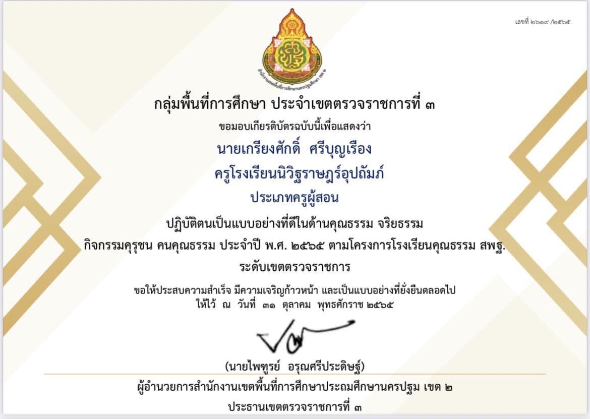 รางวัลคุรุชน คนคุณธรรม ประจำปี 2565 ระดับเขตตรวจราชการที่ 3