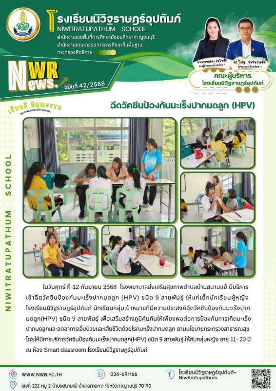 12 ก.ย. 68 ฉีดวัคซีนป้องกันมะเร็งปากมดลูก (HPV)